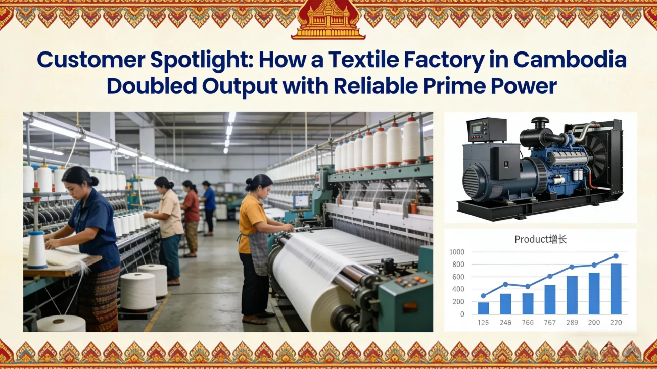 12 Dec Application & Selection Customer Spotlight: How a Textile Factory in Cambodia Doubled Output with Reliable Prime Power December 15, 2025 By generator 0 comments Weaving Success with Uninterrupted Power In the competitive global textile industry, meeting deliver... Continue reading